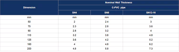 Kloorattu polyvinyylikloridiputkemme painekestävyys ja iskunkestävyys ovat parempia kuin PVC, jotka sopivat haudattavaksi betoniin , se on kuitenkin tietty hauraus matalan lämpötilan ympäristössä, eikä se ole sopiva käytettäväksi jäätymisessä.