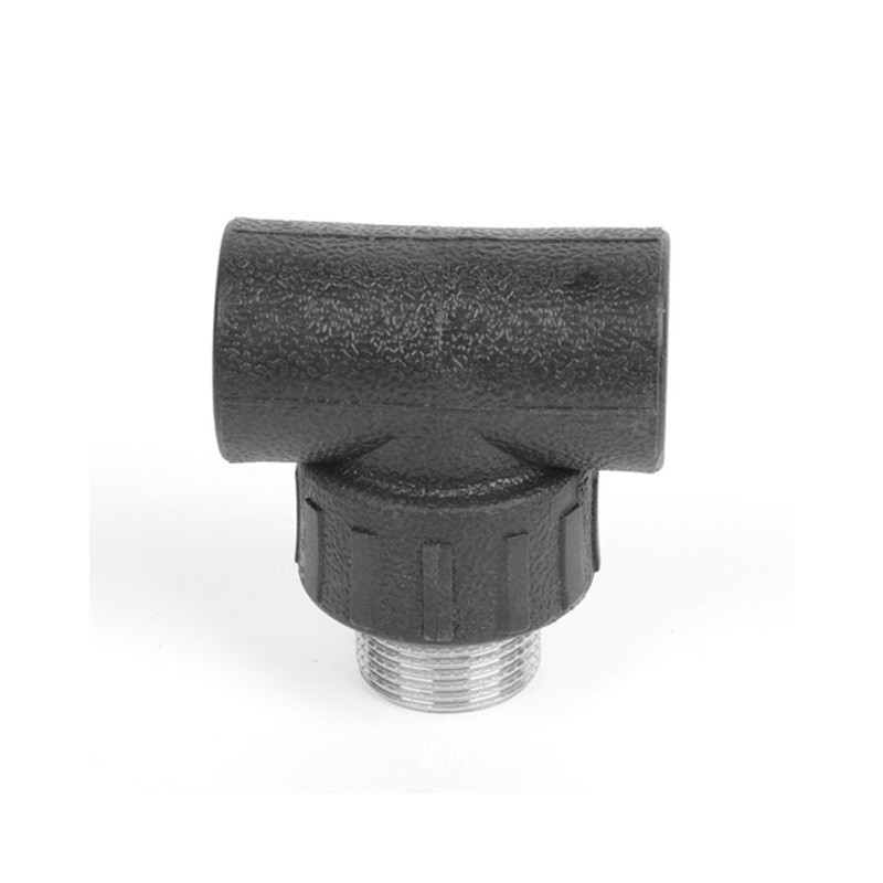 Putken liitännän HDPE: n ulkoinen säikeet jakautuu tai yhdistää virtauksen putkistojärjestelmissä. Se tarjoaa myös uroskiertoportin metalli- tai muoviosiin kytkemistä varten. Yhdessä haarassa on uroslankoja; Kaksi muuta yhdistävät HDPE -putkeen pakkaamisen tai fuusion avulla. Se luo putken oksat, pitää antureita tai lisää venttiilejä. Suunnittelu muodostaa luotettavan sinetin ilman sulatettuja liitoksia.